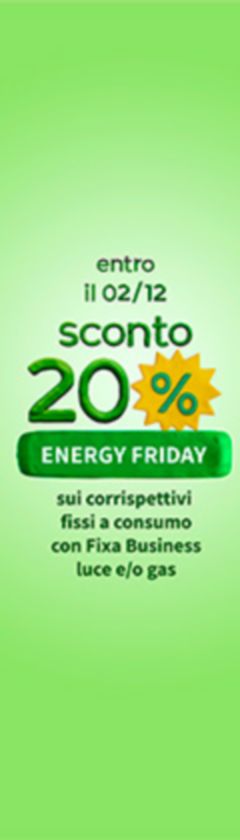 L’offerta con i corrispettivi fissi a consumo per 12 mesi. Scopri la promo Energy Friday.