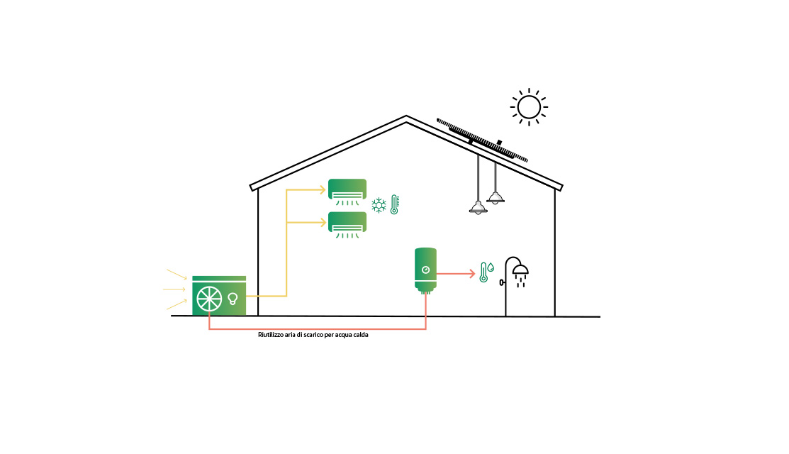 Scegli un sistema a pompa di calore per riscaldare casa e produrre acqua calda sanitaria. E con il sistema all-in-one ad aria puoi anche raffrescare gli ambienti.